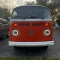 "Artie" - Orange and White 1979 VW Bus with Brown Interior. Complete with the 1970s vibe!