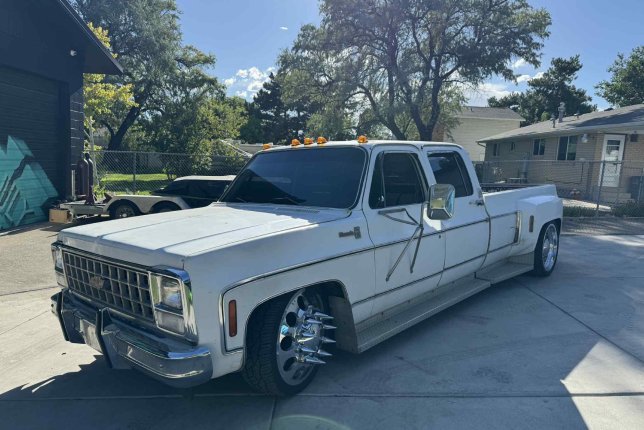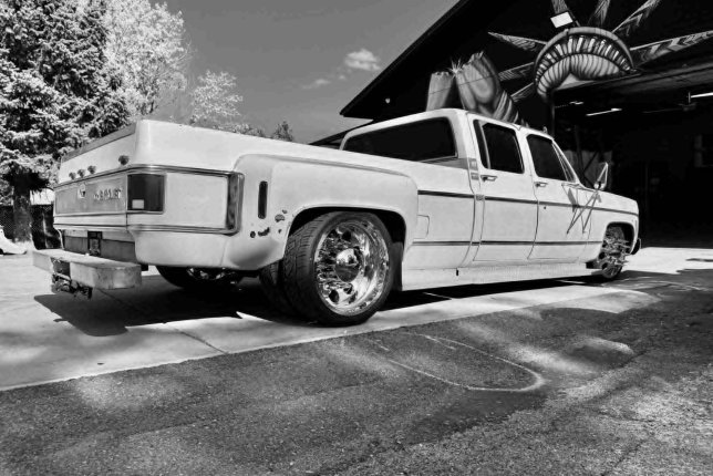 There’s a certain kind of rumble that makes people turn their heads—not out of fear, but curiosity. That deep, rolling thunder that says something serious is coming. That was the sound of EDDNA, a 1980 Chevy C30 crew cab dually, slammed to the pavement and riding clean on a set of polished 22" semi wheels. With the paint original—sunburnt and worn, left to remind you she’d seen things. But under the hood, she was all business. A 454 big block with a nasty exhaust let everyone know she wasn’t just for show. She had presence. She had scars. She had history. And most importantly—she rolled in like she owned the place.