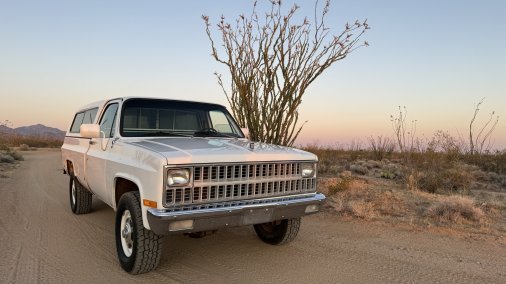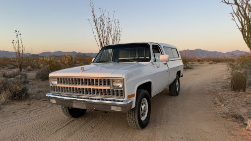 This is my sweet old 82 Chevy K20. She is in excellent original condition and is a joy to drive. Equipped with its original diesel V8 engine, supporting a refreshed interior and oversized all terrain tires. Paint matched rear canopy. Overall just a really nice old truck.