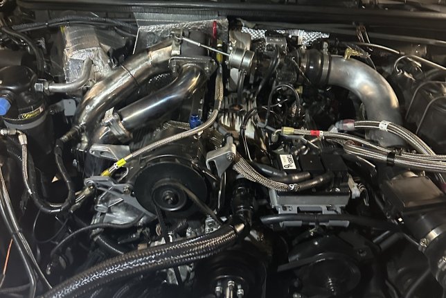 3.8 liter turbocharged V6. Ported heads and intake. Stage 2 turbo with MAF translater, cooling system from Infinity class NASCAR.