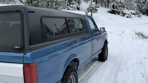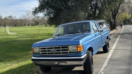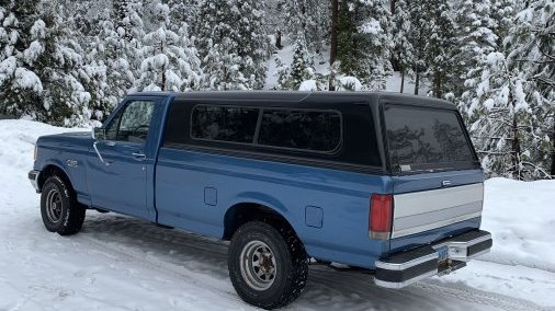 Classic Ford Blue manual locking 4x4 with a nice even lift and look with a perfect balance of aggressive looking tires but not overdone. I have owned this truck for 10+ years and purchased it because of the manual locking front hubs and the look. I think this body style is the best look that Ford (or any other truck manufacturer for that matter) has ever made. I love the classic box front and I also wanted a full 8’ bed and the older style 2 door without the extended version. I just love the looks of it. I then put 20+k into it getting it running perfectly replacing the engine, transmission, fuel system, much of the electrical system, the front end, the steering and much more. I am still wanting to update the interior but thus far all professional photos taken have been of the exterior, with and without the shell.