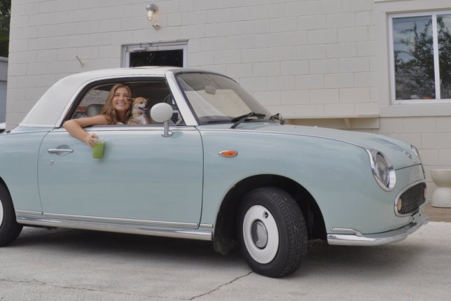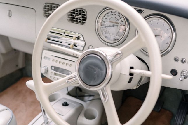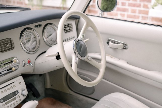 Our Nissan Figaro is all original, right down to its perfect soft-blue paint job.