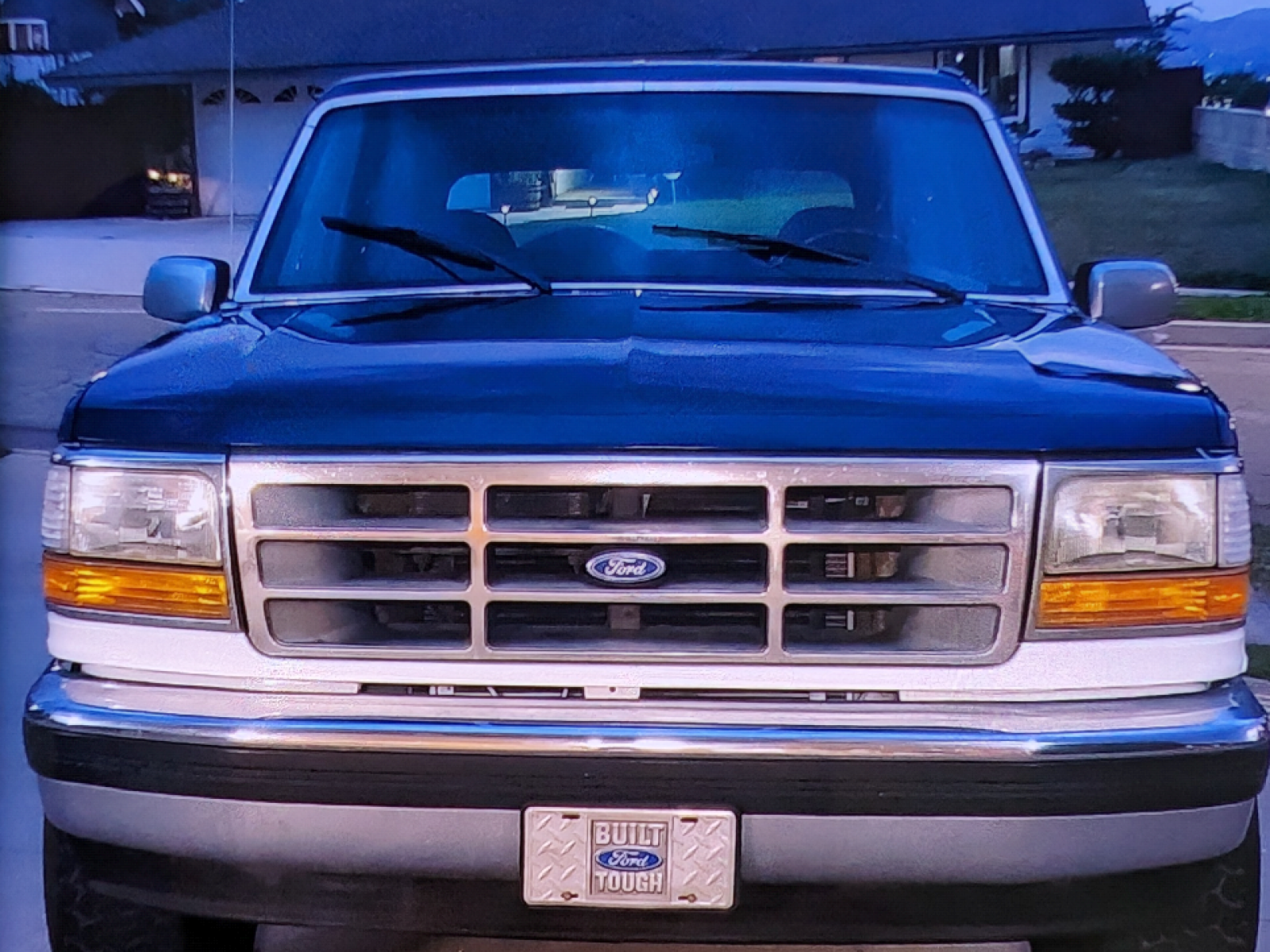 Iconic 1992 Ford Bronco, well maintained on a 2 tone bue and white half stripped paint with a 5.0 engine and immaculate looks. Perfect for any vintage and dated films, video shots and more.