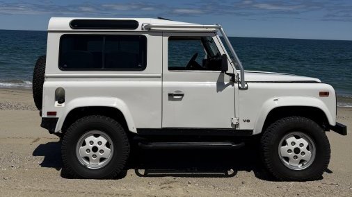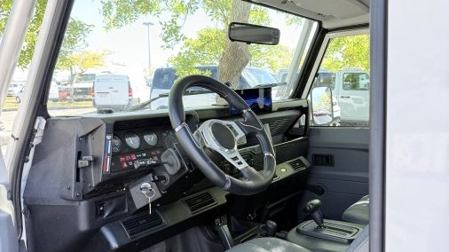 Meet our 1997 Land Rover Defender 90 NAS. We are equipped with the rare factory automatic transmission, a v8 engine, sound system, all wrapped in the classic Alpine White.