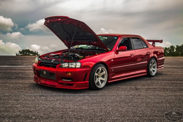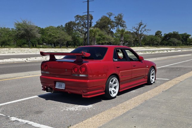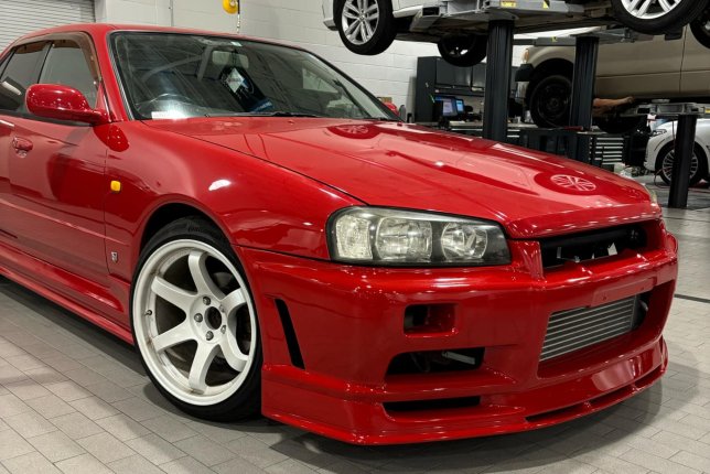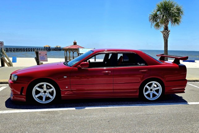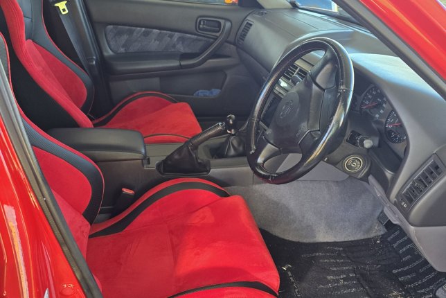 Right Hand Drive car imported from Japan in June 2024. Custom body kit, aftermarket custom exhaust, Status Racing seats, 18x9.5 ShoGun Race Spec wheels. RB25DET NEO engine with Blitz intercooler, turbosmart blow off valve. This car was featured in article by GT Tourq in 2020, after it was modified Japan, with the engine and transmission swap, full paint job that included the entire engine bay (paint matched engine bays were not commonly available from the factory).