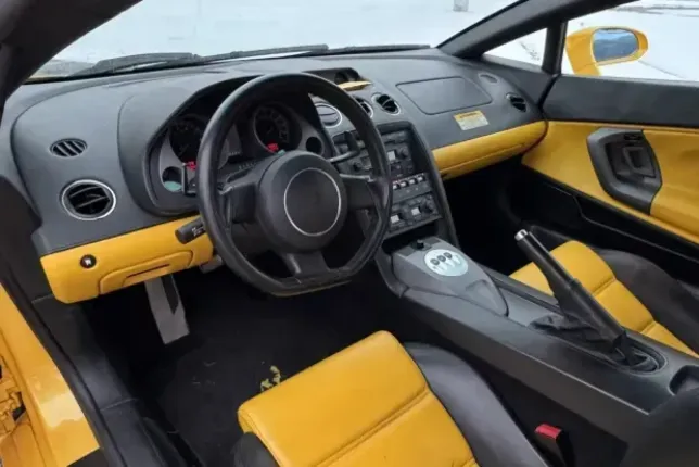 19-inch cast aluminum alloys, featuring the signature five double-spoke “Cassiopeia” design that perfectly complements the car’s angular, aggressive styling. They measure 8.5 inches wide in the front and 11 inches wide in the rear, allowing for a staggered tire setup that enhances traction and handling. Wrapped in high-performance rubber, the wheels not only look sharp but play a key role in the Gallardo’s planted, confidence-inspiring feel. Their lightweight construction helps reduce unsprung mass, improving both ride quality and steering response—exactly what you'd expect from a car with supercar DNA.