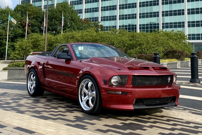 Suny is a 2007 Mustang GT/CS (CS is California Special) convertible in Redfire (Paint color only used for 3 years). We bought car used in 2010 bone stock and have done all mods ourselves (Except painting hood) which include Steeda under drive pulleys, BBK 62mm throttle body, C/L cold air intake with tune, strut tower brace, engine dress up kit, Barton short throw shifter with custom shifter knob, Flowmaster Outlaw axle back mufflers, Cervini ram air IV hood with functional ram air kit, Quick latch twist lock hood pins, Shelby razor 20x9 chrome rims mounted on Nitto NT555 G2 (265/35/20 front / 285/35/20 rear), Shelby GT bezels & PIAA lower driving lights, Shelby GT lower grille, Cervini billet upper grille, style bar, illuminated wind deflector, drilled/slotted brake rotors with painted calipers, BMR rear upper and lower control arms with lower relocation bracket.