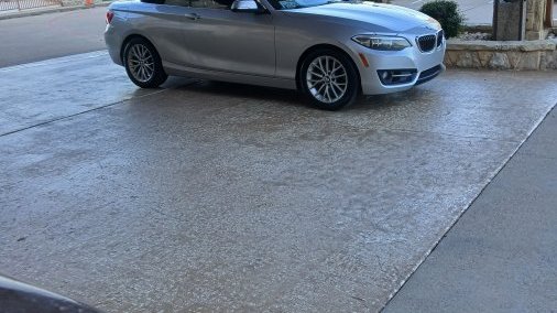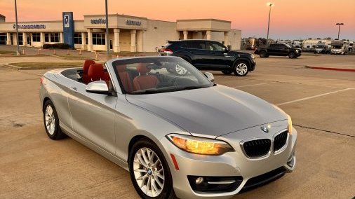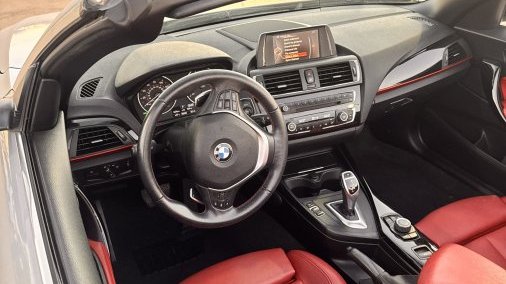 Silver with a black soft top. Red interior, 240-hp turbocharged luxury convertible, best for a ride of 1 or 2.