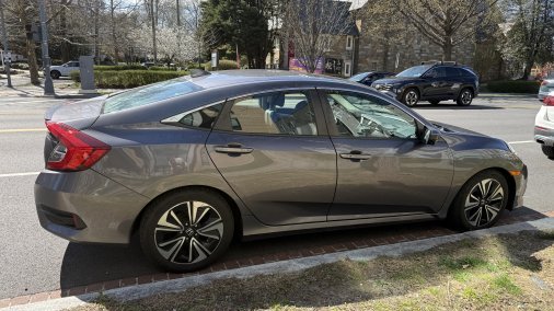 Gun metal grey Honda Civic with great gas efficiency, low maintenance costs, and high reliability.