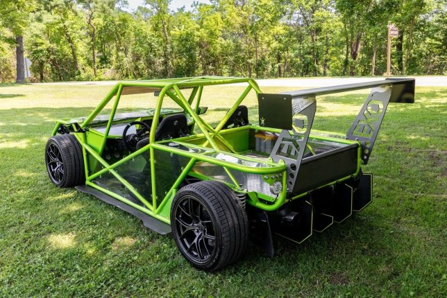 Welcome to this unique Mad Max-mobile on steroids! With a drivetrain from Subaru’s rally-bred performance car, adjustable differential controls, and a lightweight steel tube exoskeleton (powder coated in “Illusion Shocker” green), this AWD 400+hp beast features Brembo disc brakes, Rota 18-inch wheels, LED exterior lighting, a Nine Lives wing, and fully digital instrumentation.