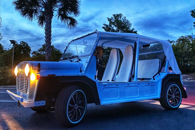 *Please note: Moke's are 100% electric. They are not street legal in Walton County, and must only be driven on HWY 30A. They are designed to go up to 30 MPH. All drivers must have a valid United States issued drivers’ license. Must be 25 years of age or older to rent.