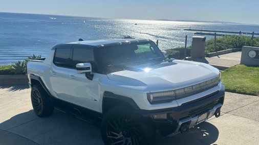 1000+HP Electric Hummer 3X. 9240 pound beast. White with black accents. Crab walk and King Crab mode. Convertible Pickup truck. perfect beach rider with kicker radio and speakers in the tailgate. convertible removable roof.