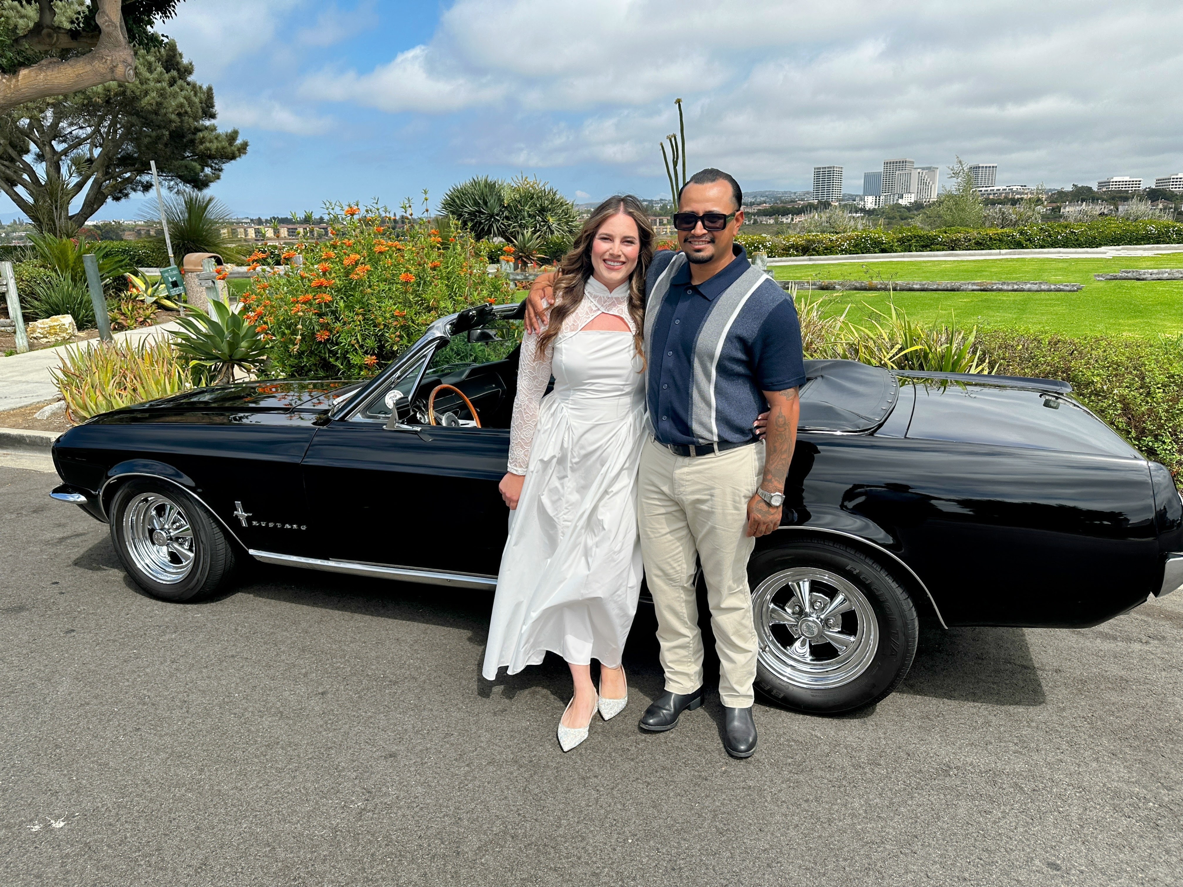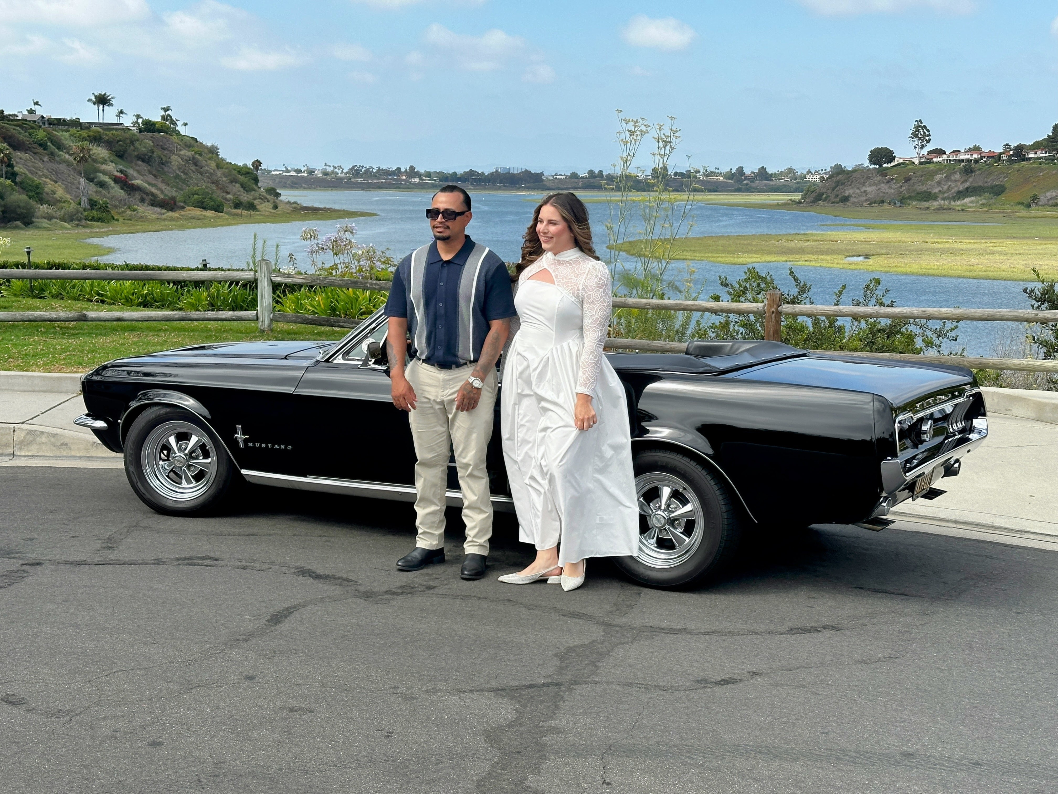The car was rented for an engagement photo shoot. It was fun watching the couple playfully move around the car while posing. The choice of backgrounds enhanced the experience.