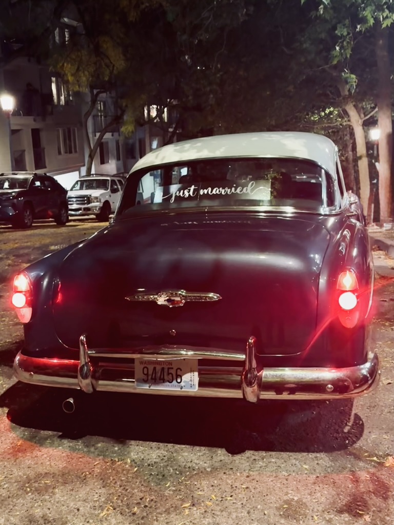 Beautiful, classic 1953 indigo Chevy with a great sound system - perfect for a getaway ride to the couple's honeymoon hotel. Eric was an exemplary host, professionally friendly, reliable, communicative and punctual. Thank you, Eric for capping off the wedding with style, class and musical sensitivity!