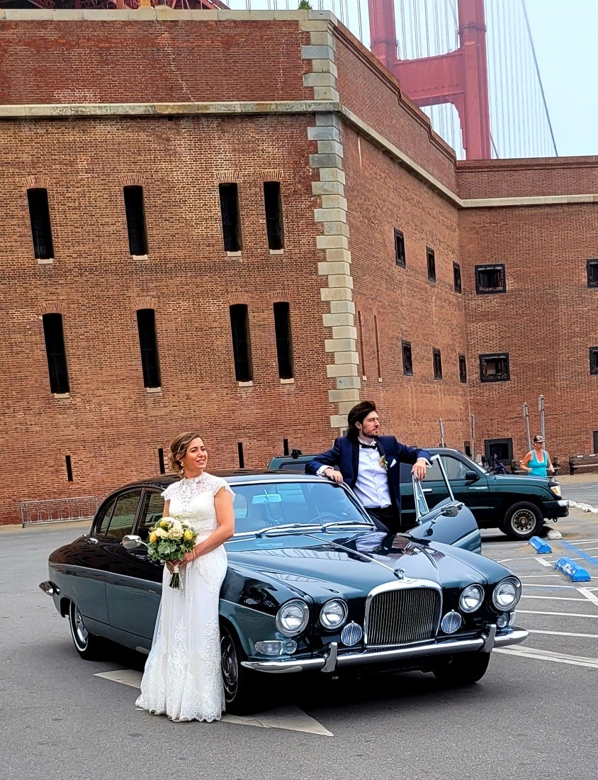 I had a delightful time picking up Benjamin and his fiancé, taking them to City Hall to get married and then to Fort Point under the Golden Gate Bridge for wedding pictures, many of which included my car.