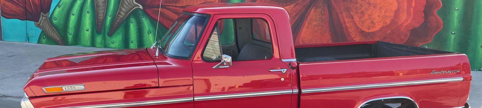 From his garage to mine, Arkansas to California. Dad has had the red truck since I was about seven years old. It wasn't red then but green. He's rebuilt it about ten times, and it's a beauty. I drove this truck at 15, learned to drive in it, and spent many hours with my dad bopping down the streets as we attended many baseball and basketball practices. We have done multiple duets to old Travis Tritt, Randy Travis, and Dire Straits songs with some R&B standards for good measure. Dad didn't drive the truck very much, but here in California, it's the perfect place to be on the road occasionally since it's generally 70 degrees. Los Angeles has a car culture that can appreciate its beauty. While I didn't welcome it back then, I certainly do now. It's his. It will always be his. He spends a month here every year, so visitation will be a treat. I truly appreciate the incredible work he, our family, and his friends have put into it. It's why I am so excited to have it in Los Angeles